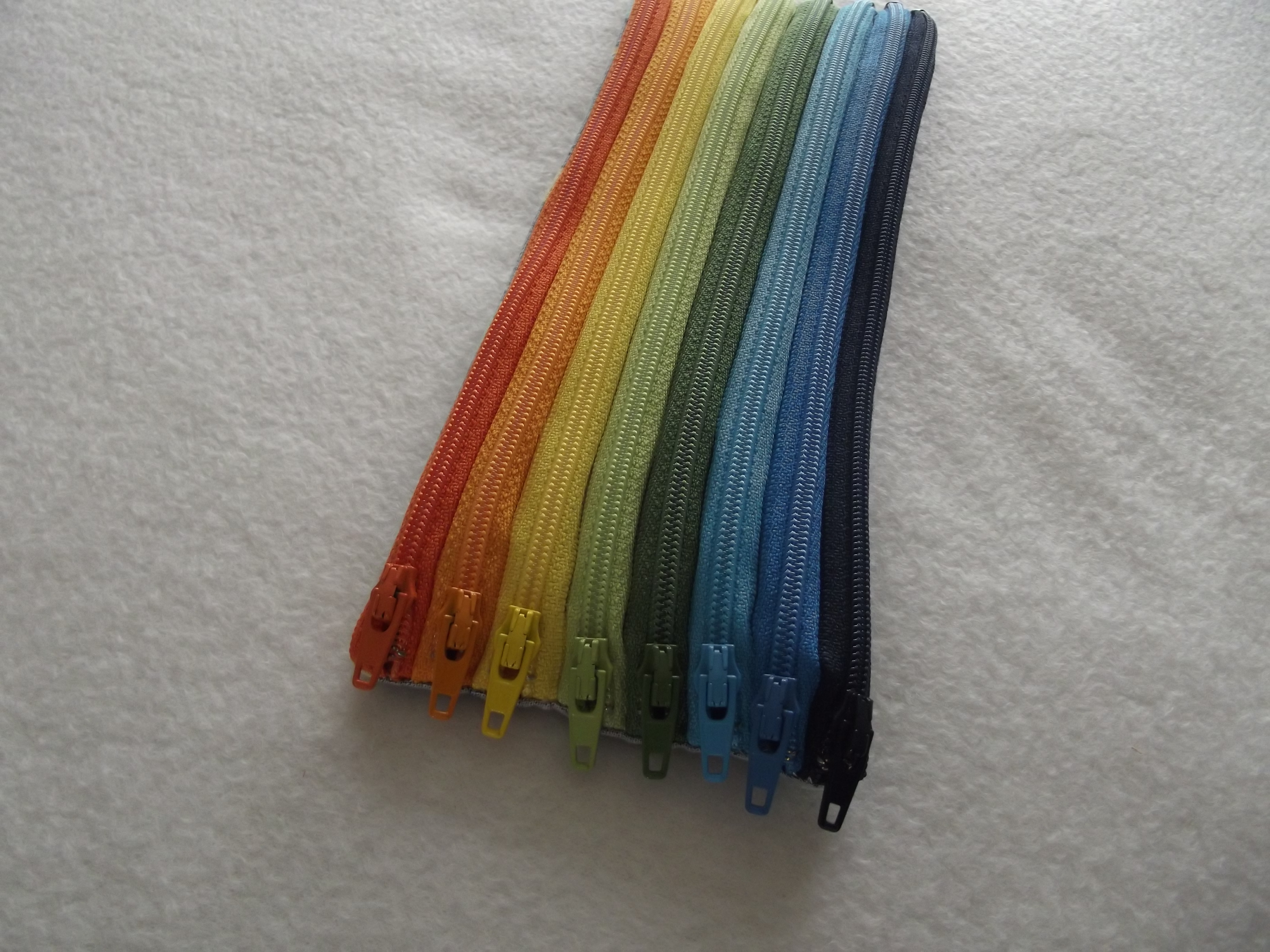 And when I’d finally sewn all the zips together and onto the backing fabric (some black cotton with multicoloured stars), I trimmed all the threads, trimmed the seams, turned it right side out, and admired my nicely lined up zips…